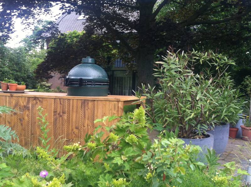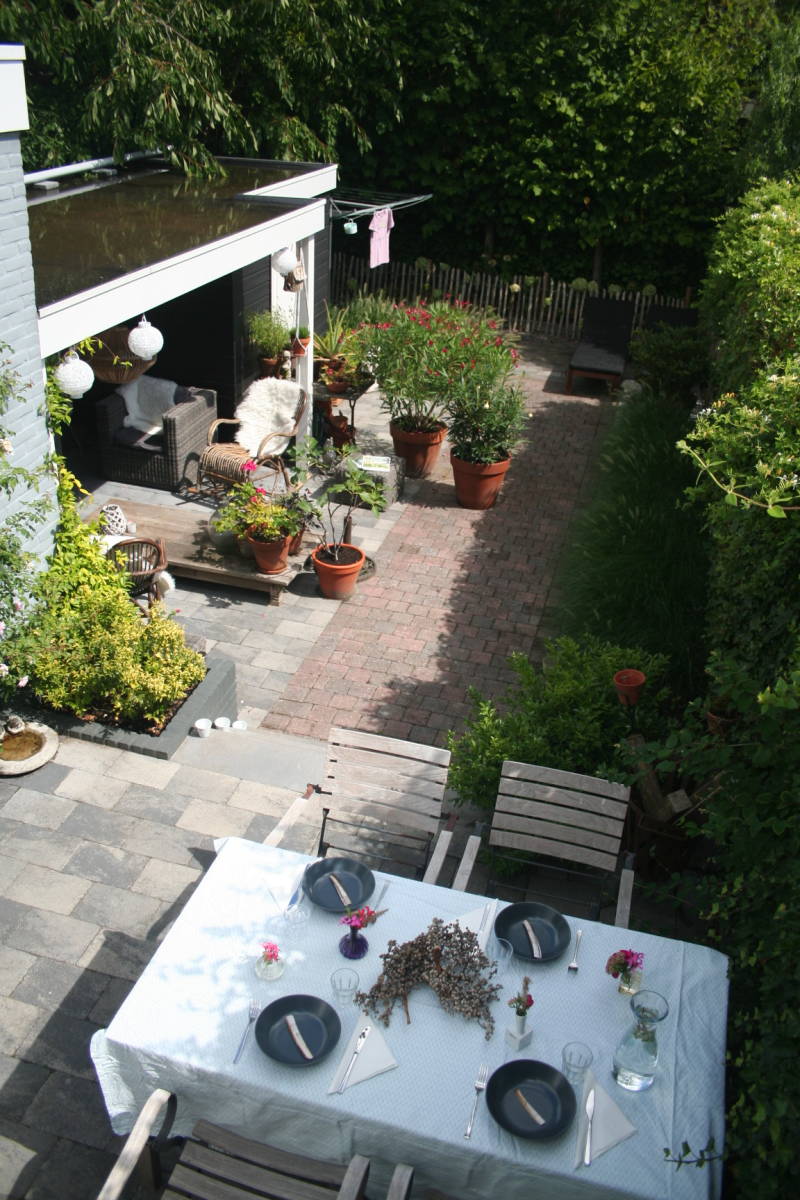 Welke plant -> Hartlelie (Hosta) er zijn vele soorten te krijgen. Mooi effect heeft de soort Blue Angel die enorme grijs/groene bladeren heeft. De Guacamole is ook een mooie variant met groen/witte randjes